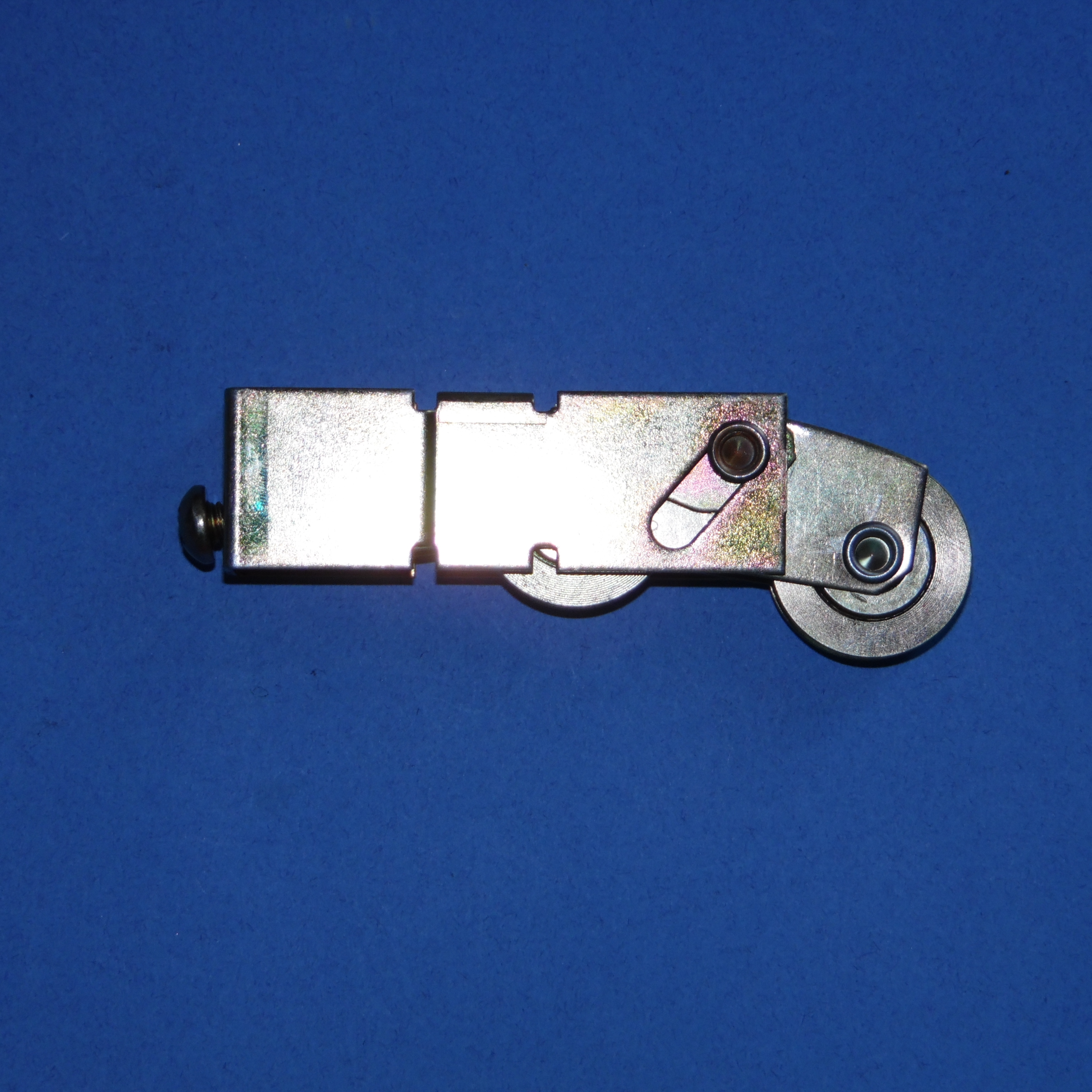 Acorn Patio Door roller body measures 3 1/8″ long x 3/4″ wide x 1″ high with 2 1 1/8″ rollers