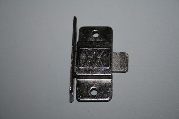 Sliding window snap lock made of die cast metal with screws. measures 7/8″ wide x 2″ high ceter mounting hole to center mounting hole measures 1 9/16″